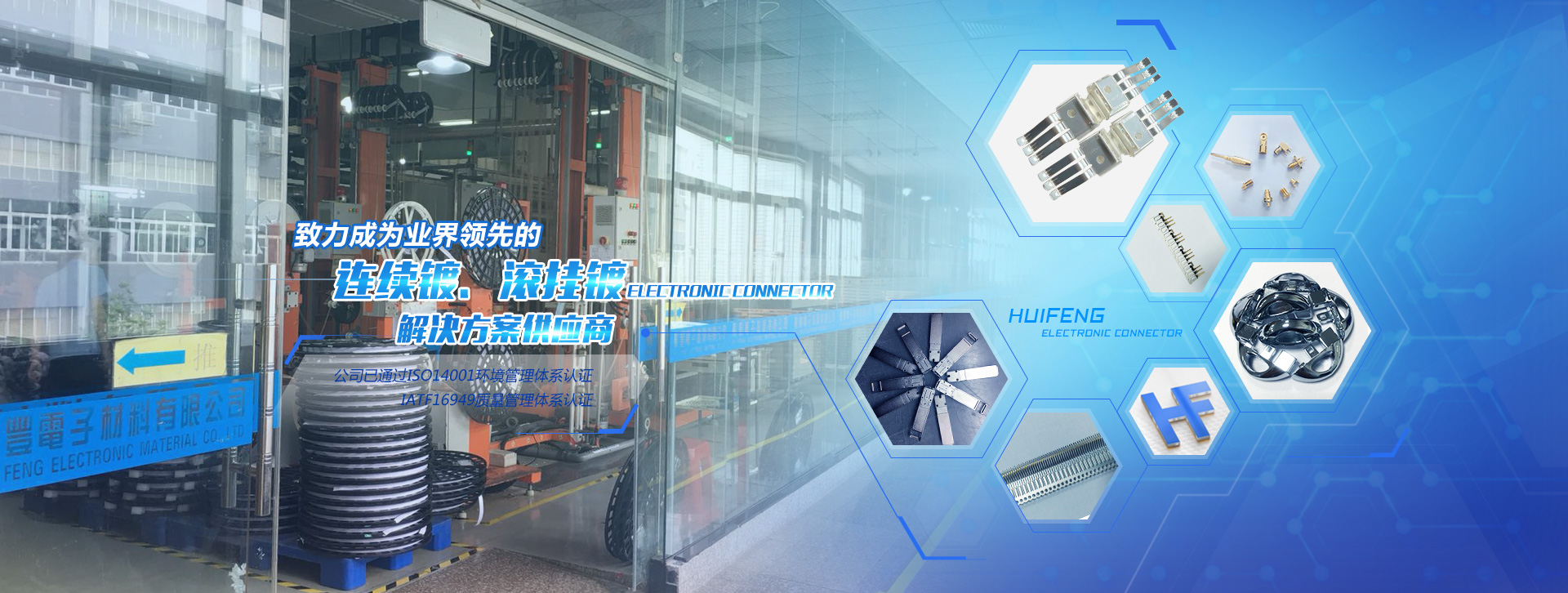 Huizhou Huifeng Electronic Material Co., Ltd set up in 2002, the company is located in 2&3 Floor 304 block "Kimou(Huizhou) Surface Treatment Recycling Eco-industrial Park". Huifeng has the independent business license and pollutant discharge permit; which is a professional engaged in reel-to-reel plating, barrel plating and rack processing enterprises...